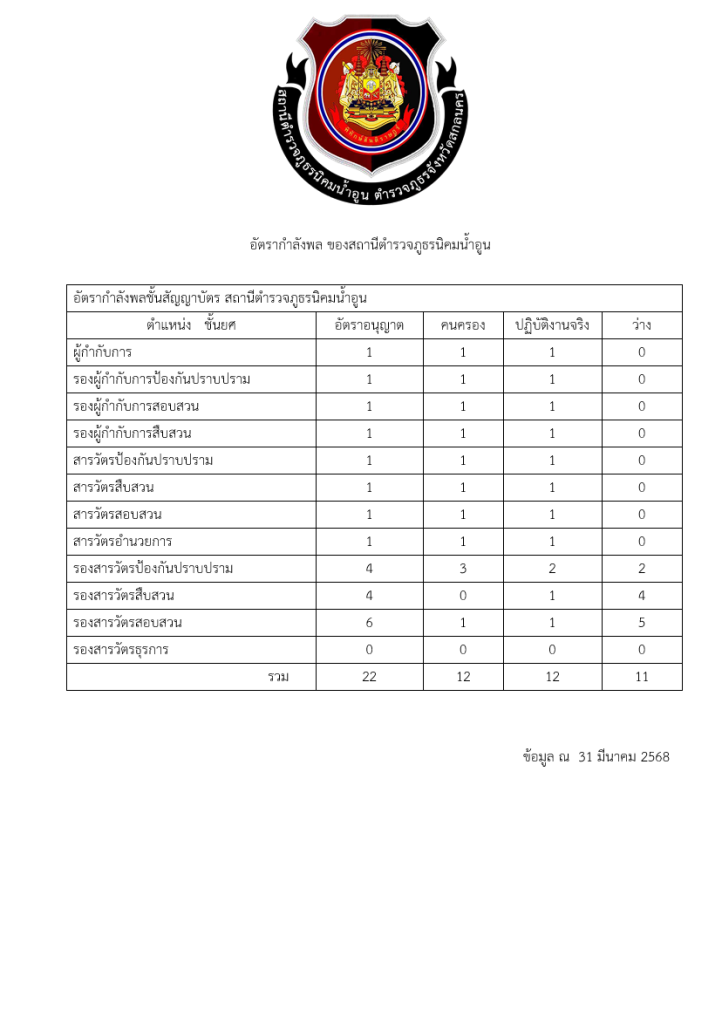 ข้อมูลกำลังพล ณ วันที่ 1 มีนาคม พ.ศ. 2568