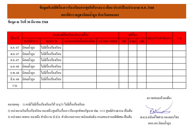 ข้อมูลเชิงสถิติเรื่องร้องเรียนการทุจริตประจำปี 2568